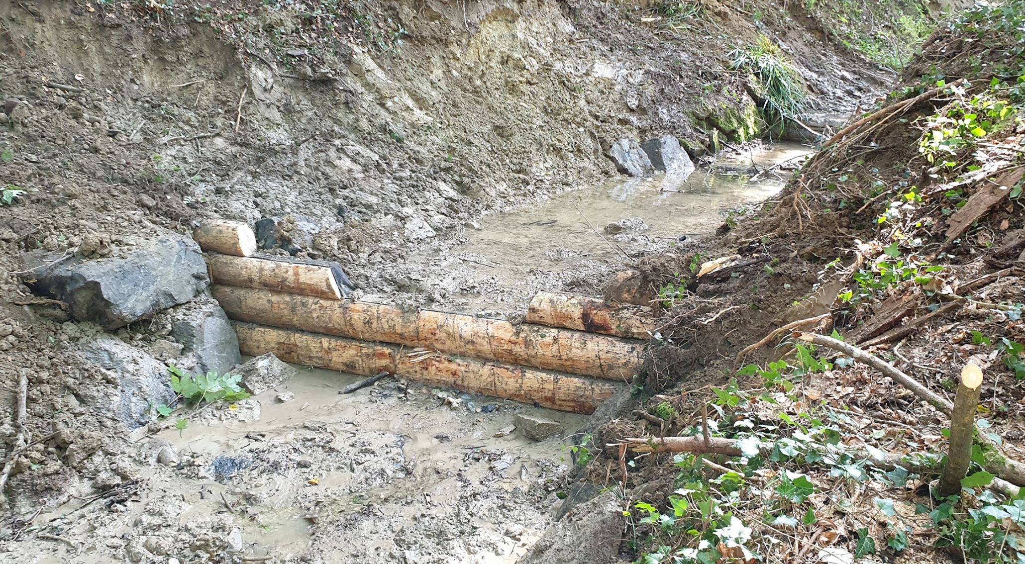 Grundsätzlich sind die Politischen Gemeinden verantwortlich für ihre Gewässer. Der Forstbetrieb führt in deren Auftrag die Pflege der Bäche im Wald durch. Ein Beispiel für diese Arbeiten sind die sogenannten Försterschwellen.